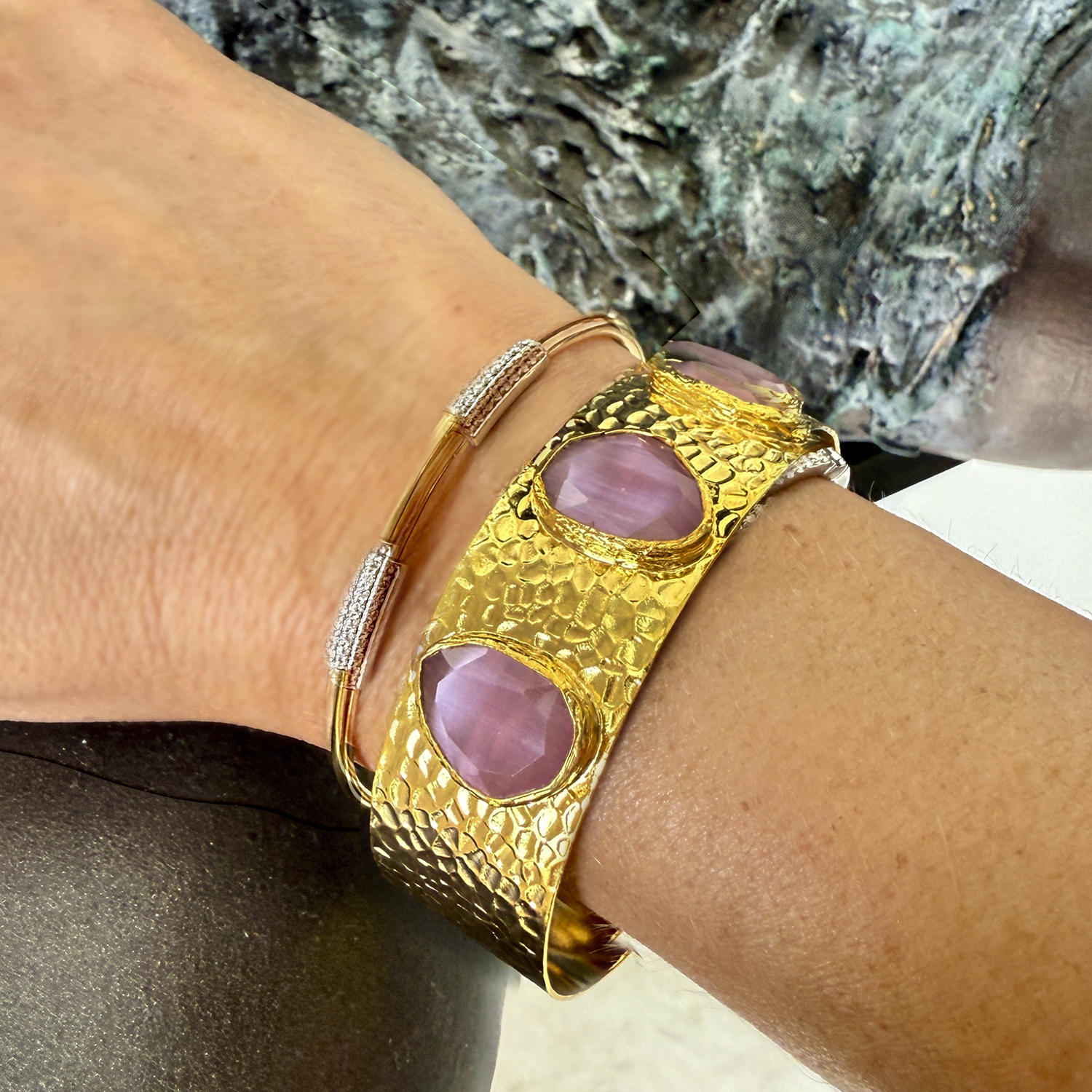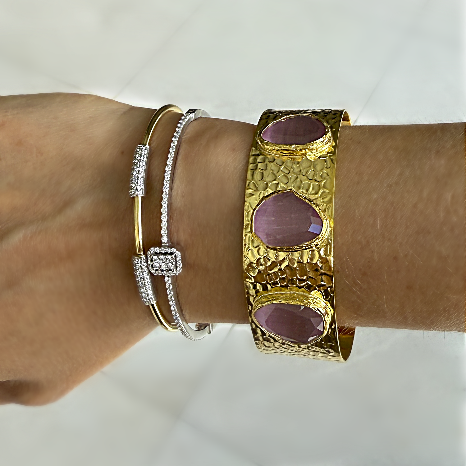 Wear it as one special piece or stackable for bold look complimenting bracelets.